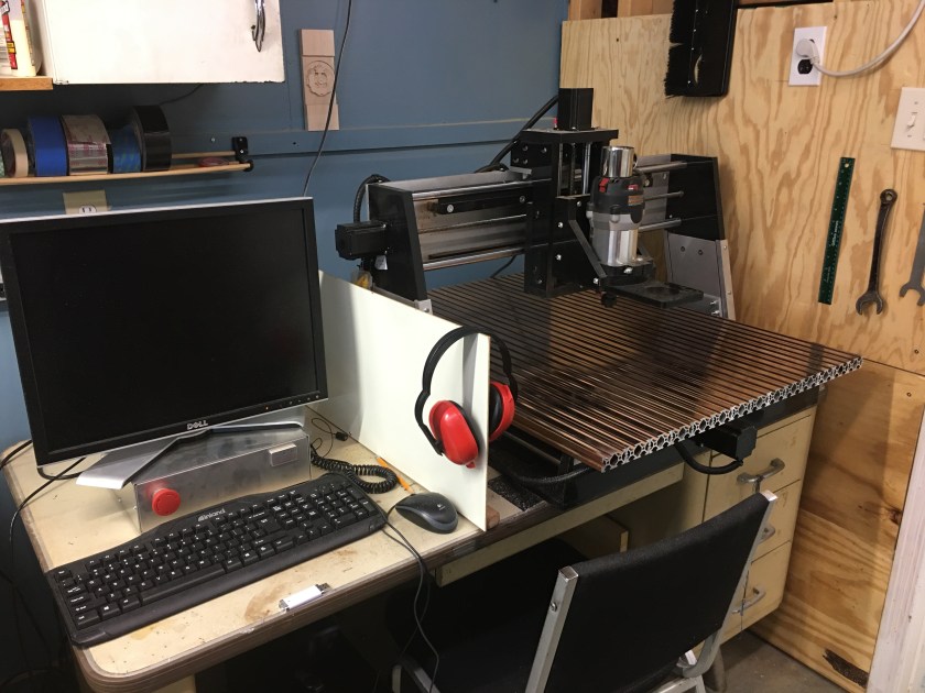 I am the lucky recipient of a hand-me-down CNC machine (thanks Dad!) This is a Shark Rockler 60th Anniversay model. Bed size is 25″ x 25″.