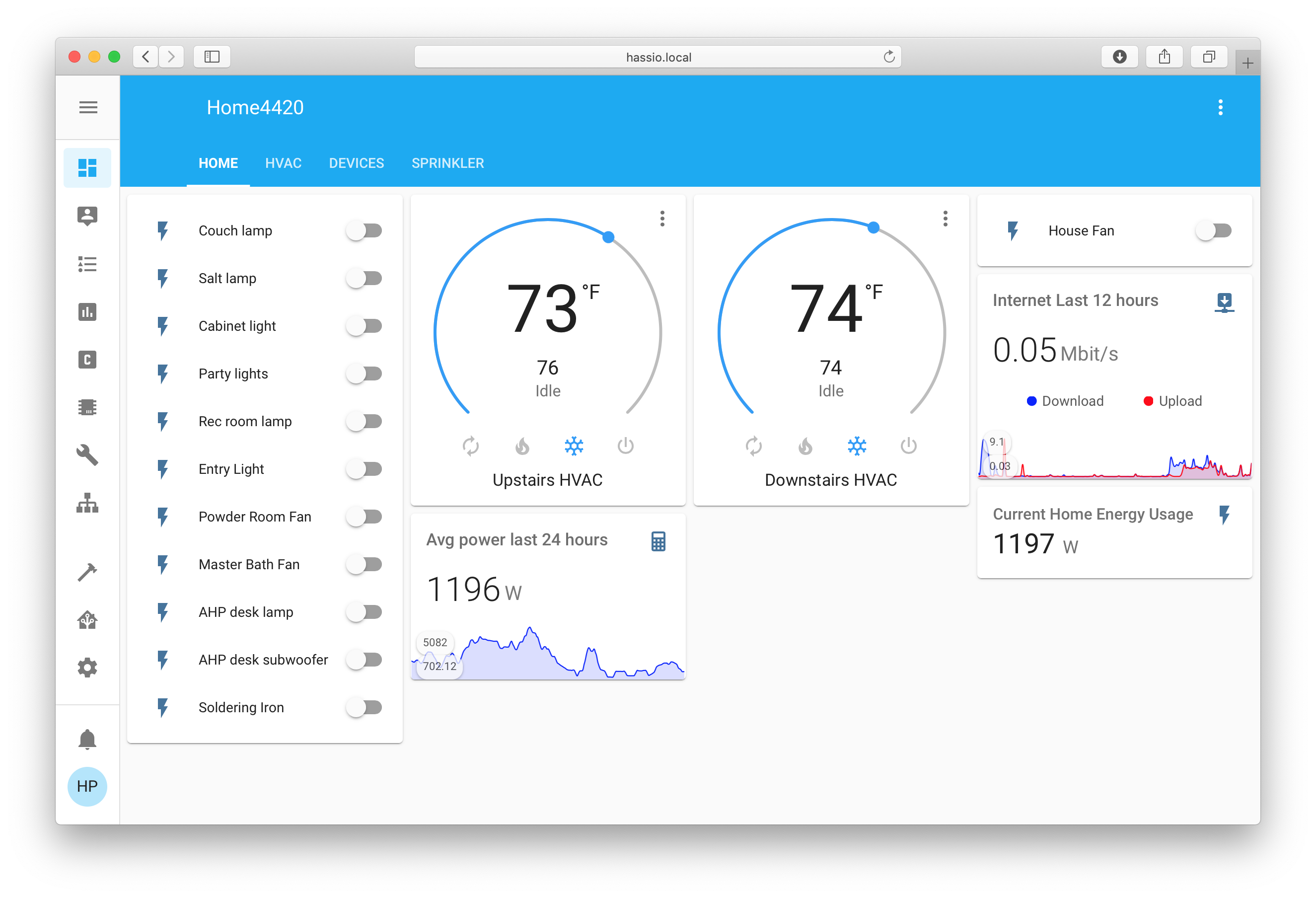 Most off-the-shelf home automation devices you buy are controlled from the cloud. If you use the app on your phone to turn on a light, that command goes to the cloud somewhere, is processed, and is relayed back down from the cloud to your device in your home. Doesn’t make much sense, does it? I’m not a big fan of this, because my lights in my home are my own business and nobody else needs to know about them. “You’re being petty,” you might say, “what harm could there be for the cloud to know you turned on a light?” Well, in my job I specialize in understanding information “leakage” from devices, and I know you can learn a lot about what’s going on inside a device from watching what leaks out. You’d be shocked at what could be inferred from peoples’ lighting habits, let alone all the other things we “leak” into the cloud. Home Assistant is built on the principle of local access – everything is done within the home network if possible, and there is no HA “cloud” scooping up all your activity. For me that’s a big part of the appeal.